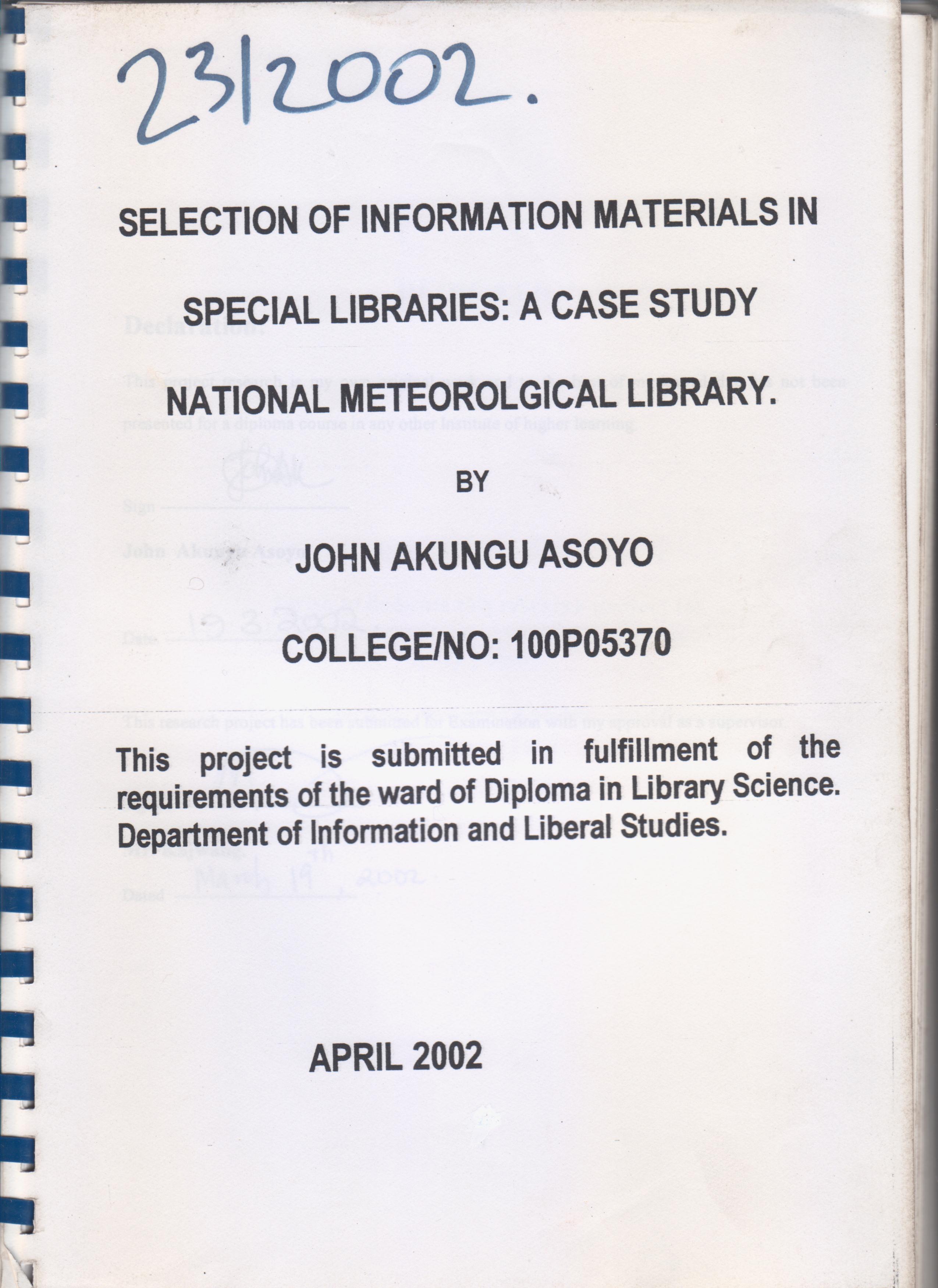 Selection of information materials in special libraries:A case study of National Meteorological library